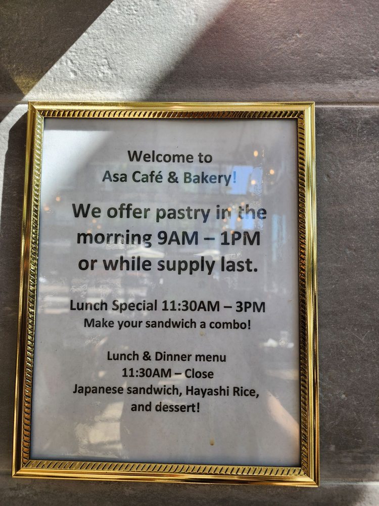 Introducing the menu at Asa Bakery & Cafe, a charming spot in East Village, San Diego, is a delightful experience for Japanese baked goods enthusiasts. With a focus on Asian-owned and women-owned establishment, Asa caters to those seeking authentic flavors and cozy ambiance. The menu includes must-tries like the Curry Pan, Shrimp Sando, and Lemon Pepper Salad, all highly recommended by patrons. The lunch specials offer great value with generous portions and unique flavors, such as the Egg Salad Sando and Chicken Katsu Sando combo. Don't miss out on the matcha croissant and hojicha latte for a perfect pairing with their delectable pastries. Expect a line outside, but the efficient service and attention to detail make the wait worthwhile. Asa Bakery & Cafe is a hidden gem for those craving quality Japanese-inspired fare in a welcoming setting.